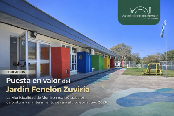 Desde la Municipalidad de Morrison se llevaron adelante trabajos de mantenimiento general y pintura en el Jardín de Infantes Fenelón Zuviría, en el marco del inicio del ciclo lectivo 2026. Las tareas fueron ejecutadas por personal municipal y financiadas a través de fondos específicos del FODEMEP, destinados al sostenimiento y mejora de los establecimientos educativos….