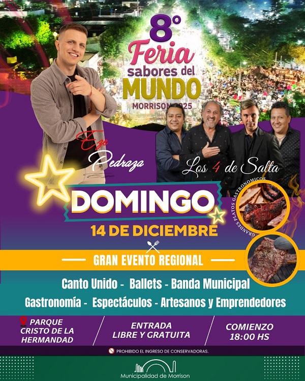 El Municipio de Morrison anunció la realización de la 8° Feria Sabores del Mundo – Edición 2025, uno de los eventos culturales y gastronómicos más importantes de la región.